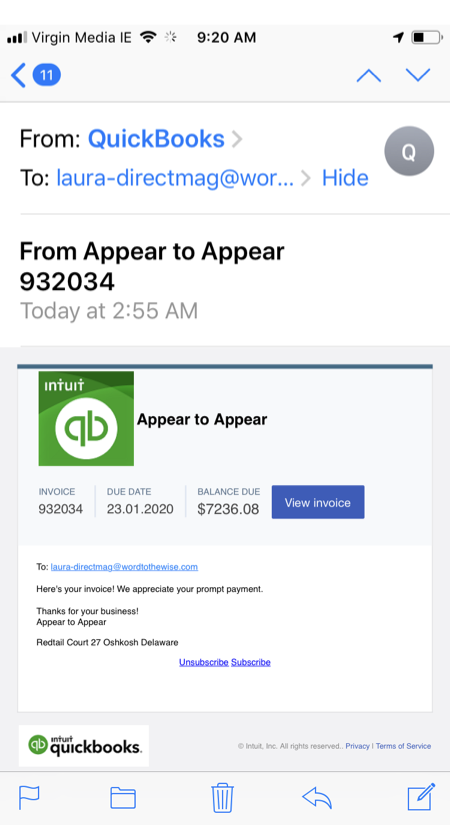 Look at this message I received today. My mail client presents this as from Quickbooks and hides the actual from email address from me. Most mail clients do that by default. It is possible to change this in some clients, like desktop mail.app. But a lot of clients simply take the choice away from the user.